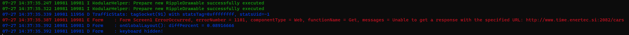 Form : Form Screen1 ErrorOccurred, errorNumber = 1101, componentType = Web, functionName = Get, messages = Unable to get a response with the specified URL: http://www.time.enertec.si:2082/cars