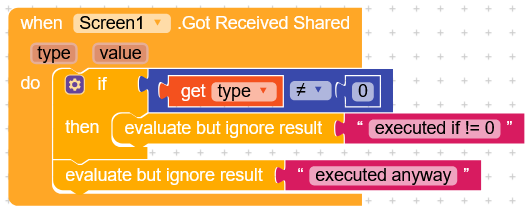 By doing if type = 0 inside the condition, you need to specify a behavior; in this case, the app was opened without receiving any shared data.