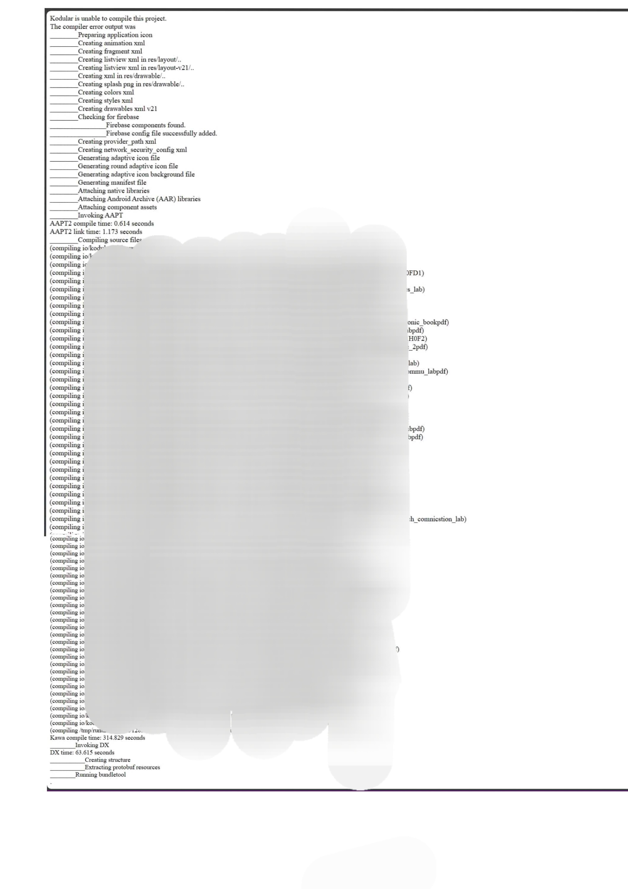 Problem- I make an app using Kodular. But at the (.aab) file exporting time main problem start. When i click - Export → Android App Bundle(.aab) then exporting start but when exporting in progress at the time when it 85% progress then show something wrong, when i click on view log… then show me - Invoking DX … I attached screenshot of that… Please help me to solve my Kodular family.