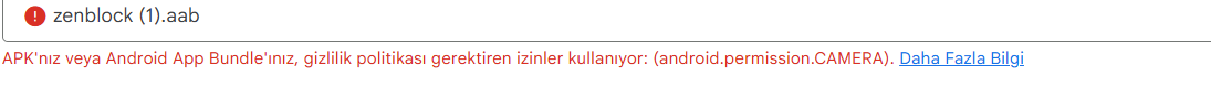 When I upload the aab file now, I get errors from Google asking for camera permission?