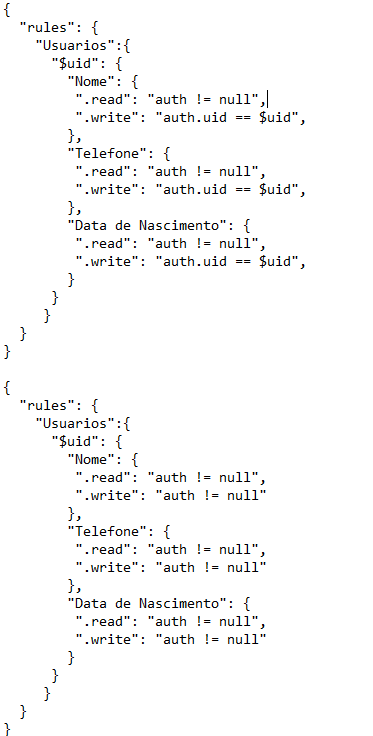 By the way, excellent. I’m having problems with my rules in Firebase. The authentication system is via email and password. My Database had this structure:
