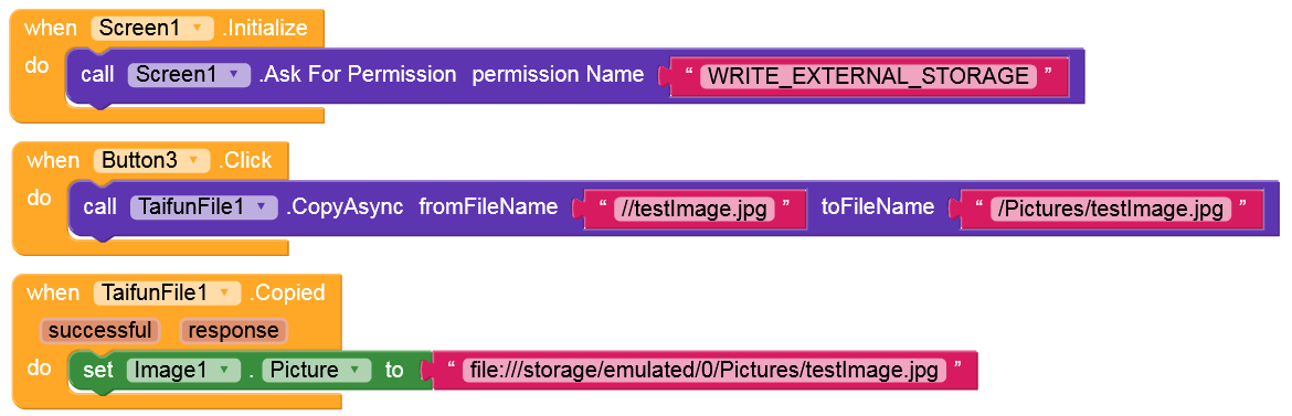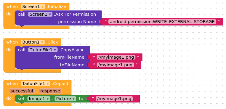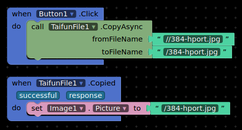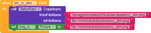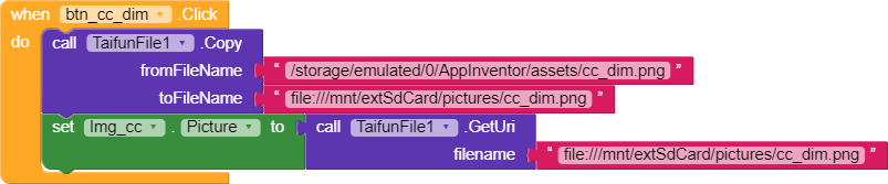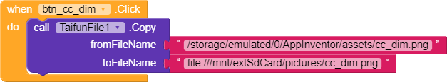 Use this method to copy small files, for large files use the CopyAsync method instead. Prefix the filename with / (i.e. relative path) to copy a file on the SD card. For instance /myFile.txt will copy the file /mnt/sdcard/myFile.txt. To copy assets packaged with an application (also works for the Companion) start the fromFilename with // (two slashes). However you can’t copy files to the assets. If a fileName starts with file:/// you can specify a complete path to the file.
