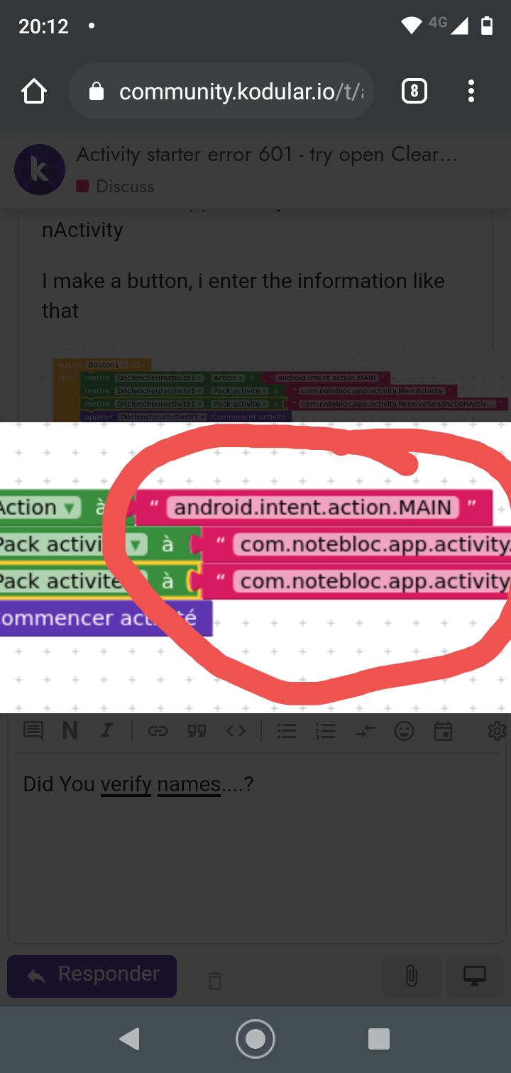 ANd when i put the button, i have the error 601: no corresponding activity was found.