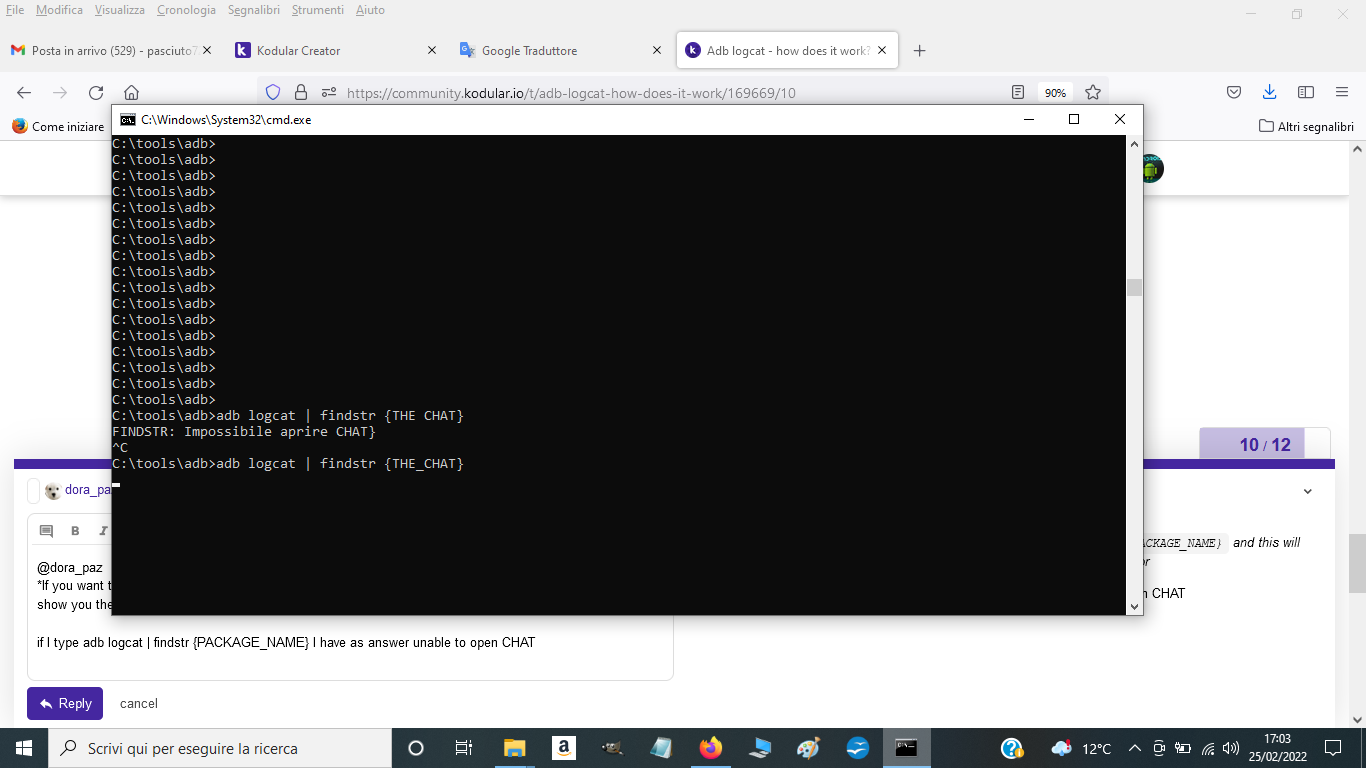 if I type adb logcat | findstr {PACKAGE_NAME} I have as answer unable to open CHAT