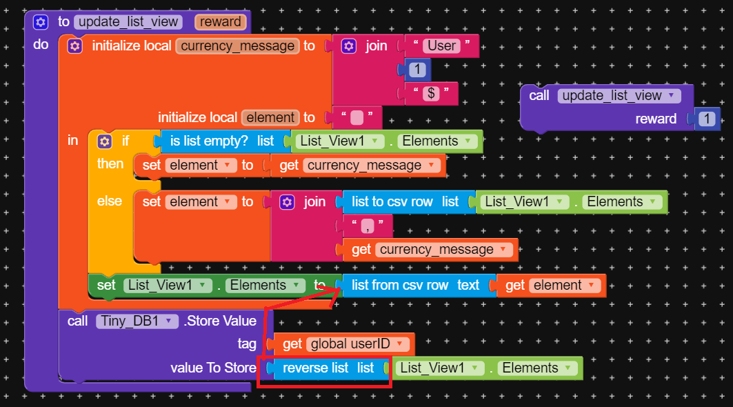 The operation reverse list cannot accept the arguments: , [“1”,User1$]