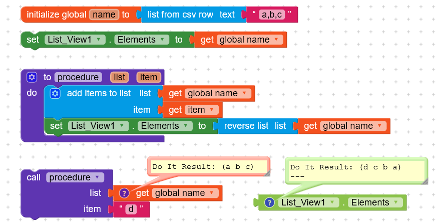Initially save items in a list then create new variable and use copy list block with Reverse list to copy items into new variable. ( The. Copied items are now Reversed for your future use)