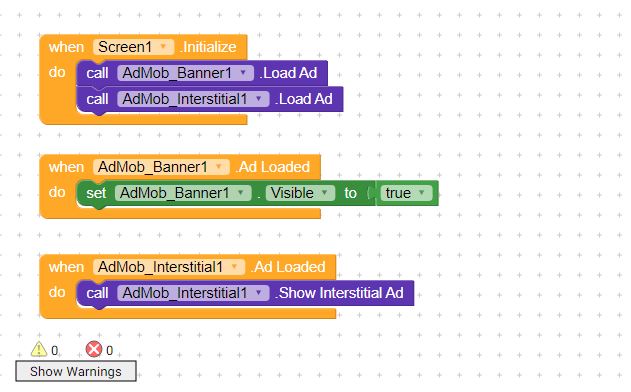 I have added a Admob bannner and interstitial element and i have also put my own ad unit id. Screen sizing has been set to responsive and ads are set to visible and are enabled still ads are not showing in the app. I have included a Screenshot of the blocks.