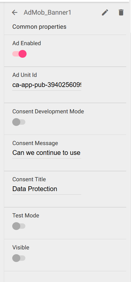 Just turn Visible button on and add your ad id.