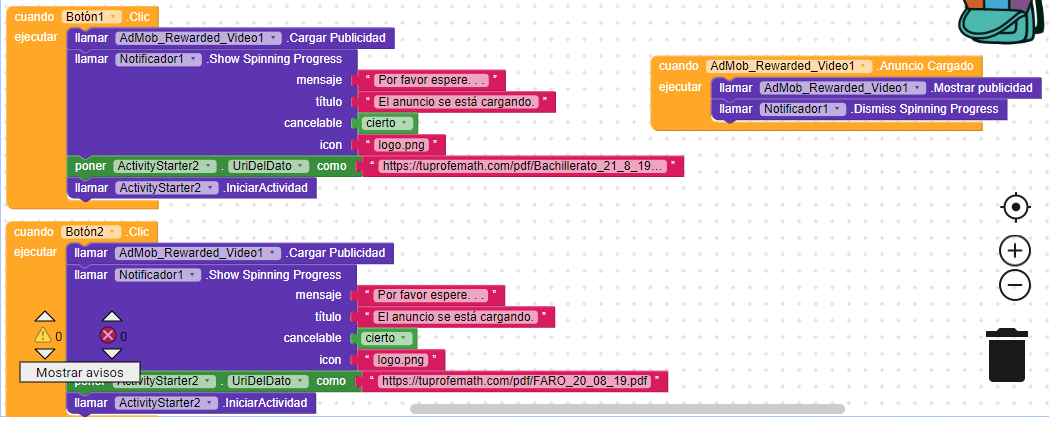 The intention is for the user to press the button one of the buttons and the ad appears, after he can view the pdf file.