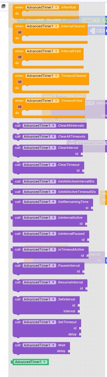If you know JavaScript programming language , you know how to create interval and time out (with set interval and set time out ) so . It is the same at this extension . You can create interval that can do a code at for example 5 seconds and it continues until we stop it . In time out is different. We set a time out to run a code after a special time for 1 time and it doesn’t continues. Break use to stop the code suddenly. And neither the processor system nor the code nor anything else can stop it, and the program suddenly dies and stops. Other blocks are not available in JavaScript and are proprietary. I will explain them.