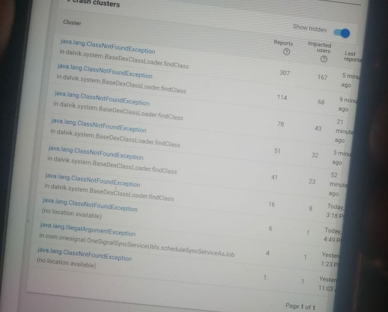 I updated application after releasing new Version 1.4C.0 and published play store but in play store show daily crashes 0 to 350+ daily and i checked crashes reason but can’t finde it please check your .