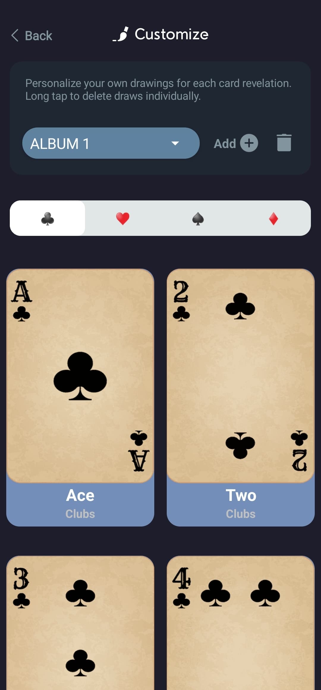 Then they tap the card buttons you see below, and replace by a drawing they make.