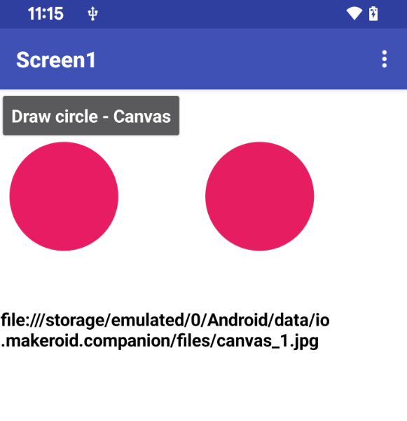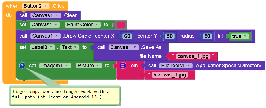Here is a simple example where a circle is drawn using Canvas, saved to the ASD and then displayed using an Image component. Of course, no permissions are required at all.
