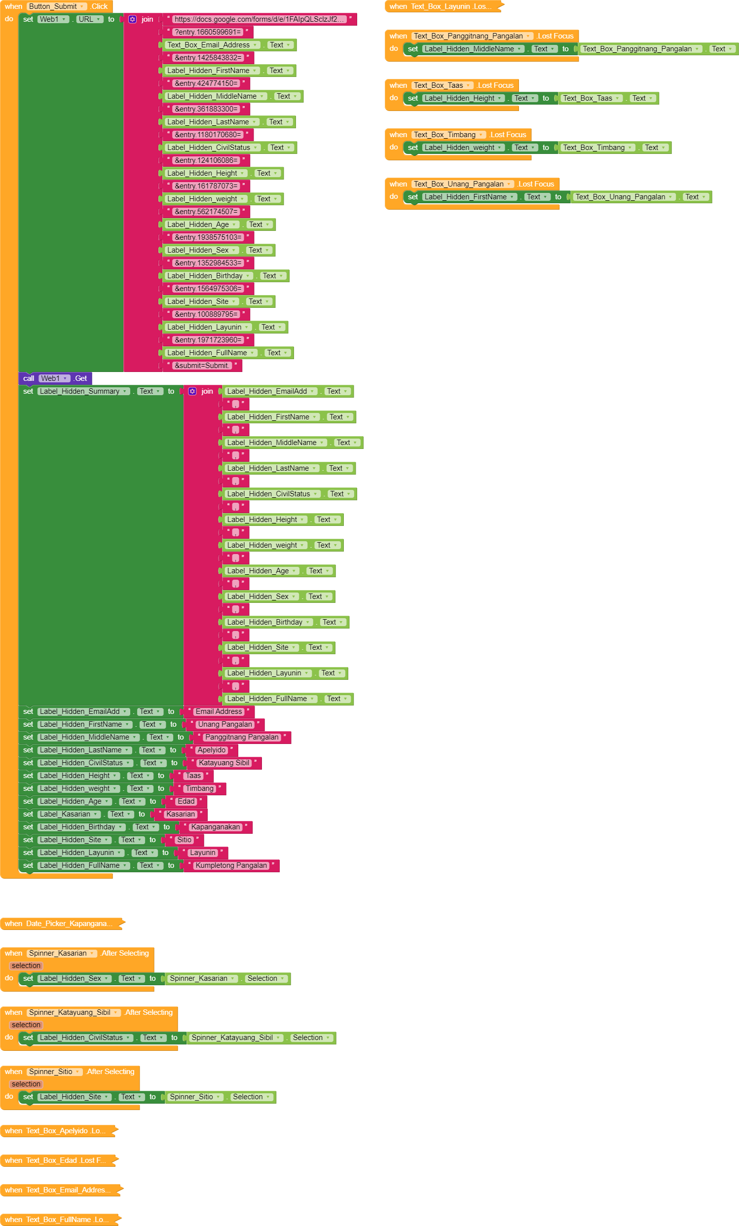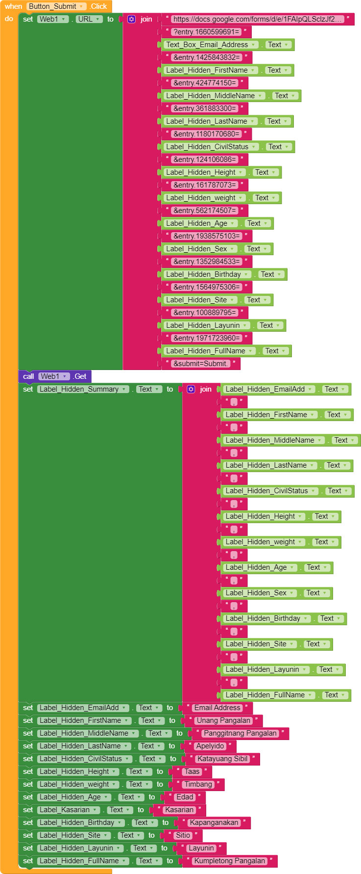 AI2 to directly submit Google Form Data Blocks Doesn't work