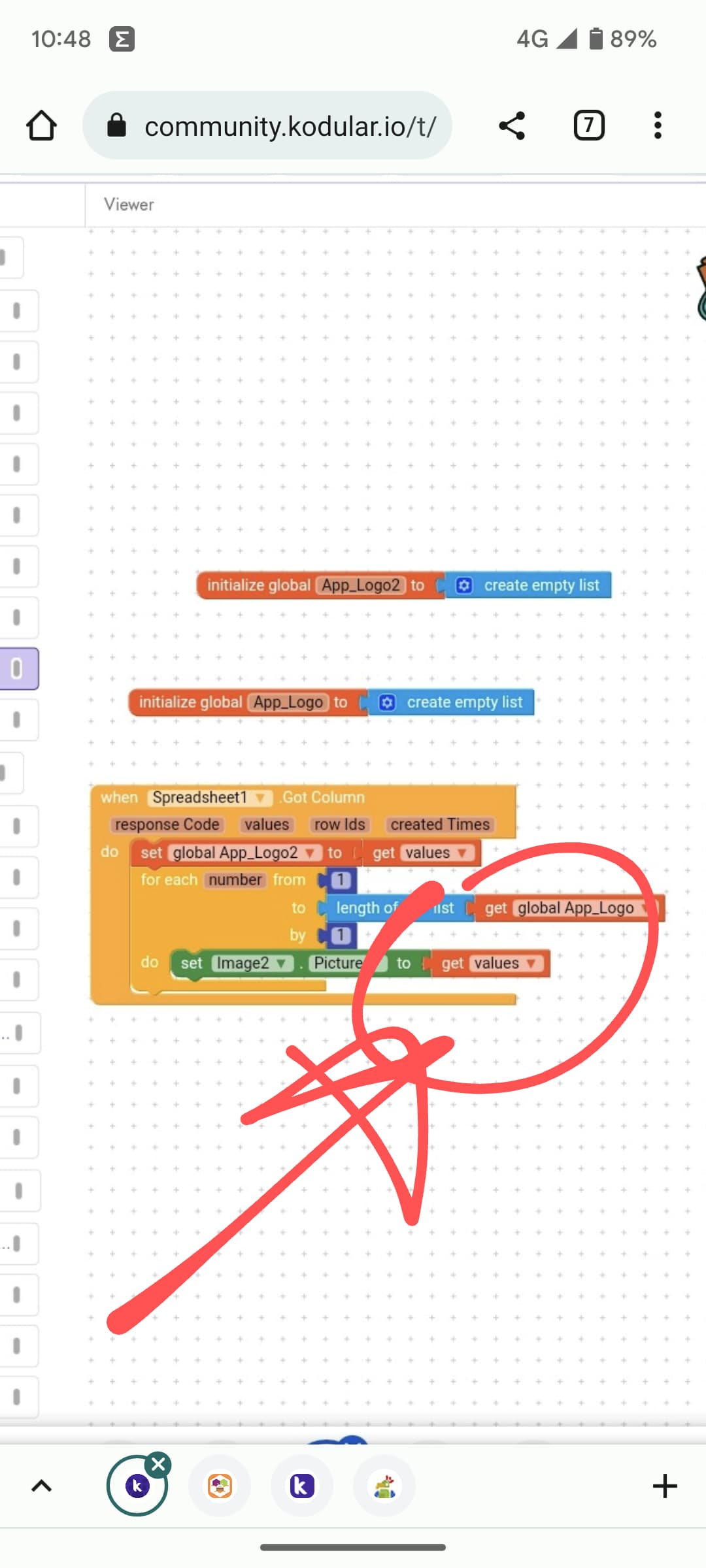Values is a list , so the for each block is correct but when you have to set the image , in the do section, you have to use item from list and number as index , not use the main variable app logo because is the all list . In this example you have only 1 row but I think you will store more that 1 item