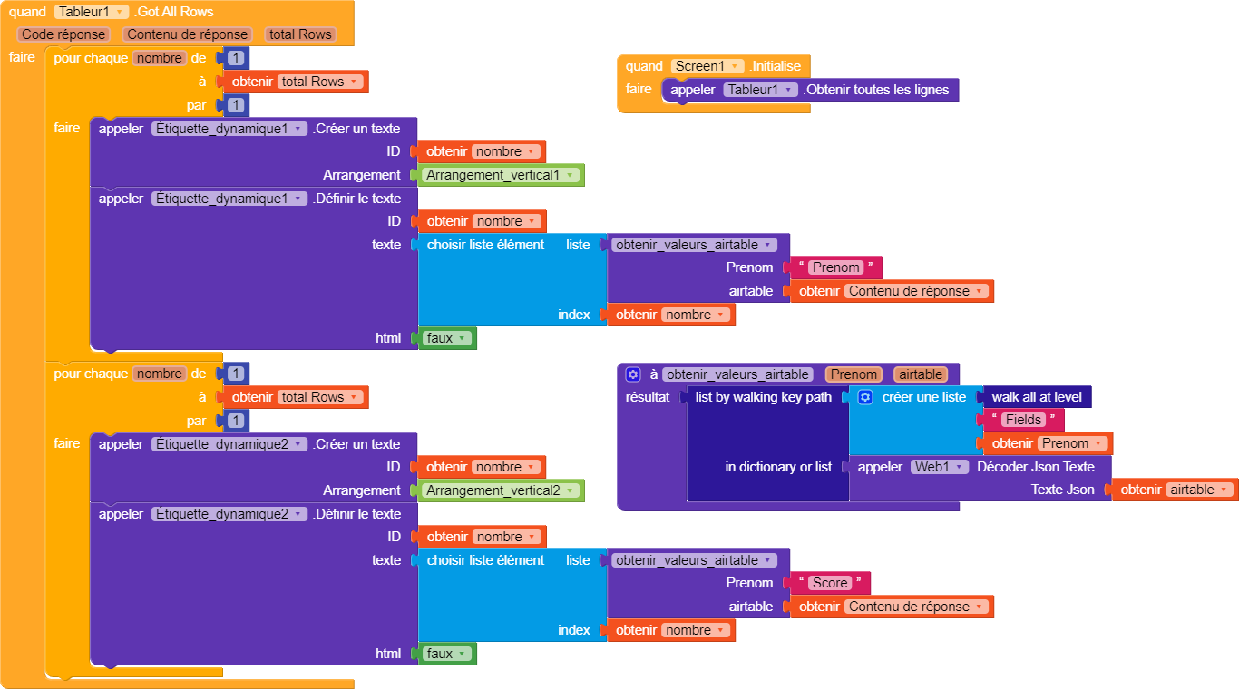 I want to display in 2 labels, the result of 2 lines. I made these blocks.