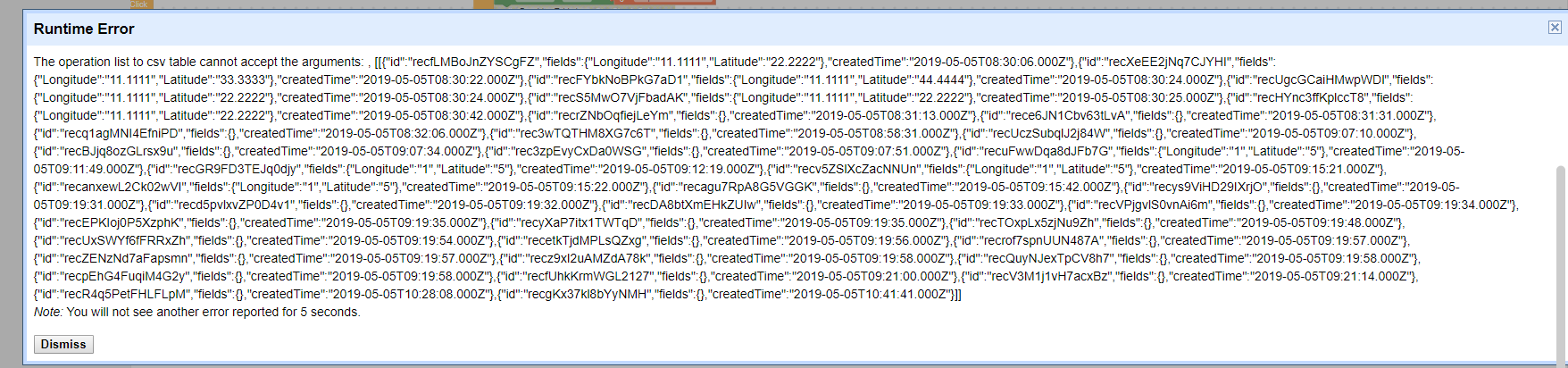 Since the image seems to be very small in here, it basically says this: The operation list to csv table cannot accept the arguments: get response Content
