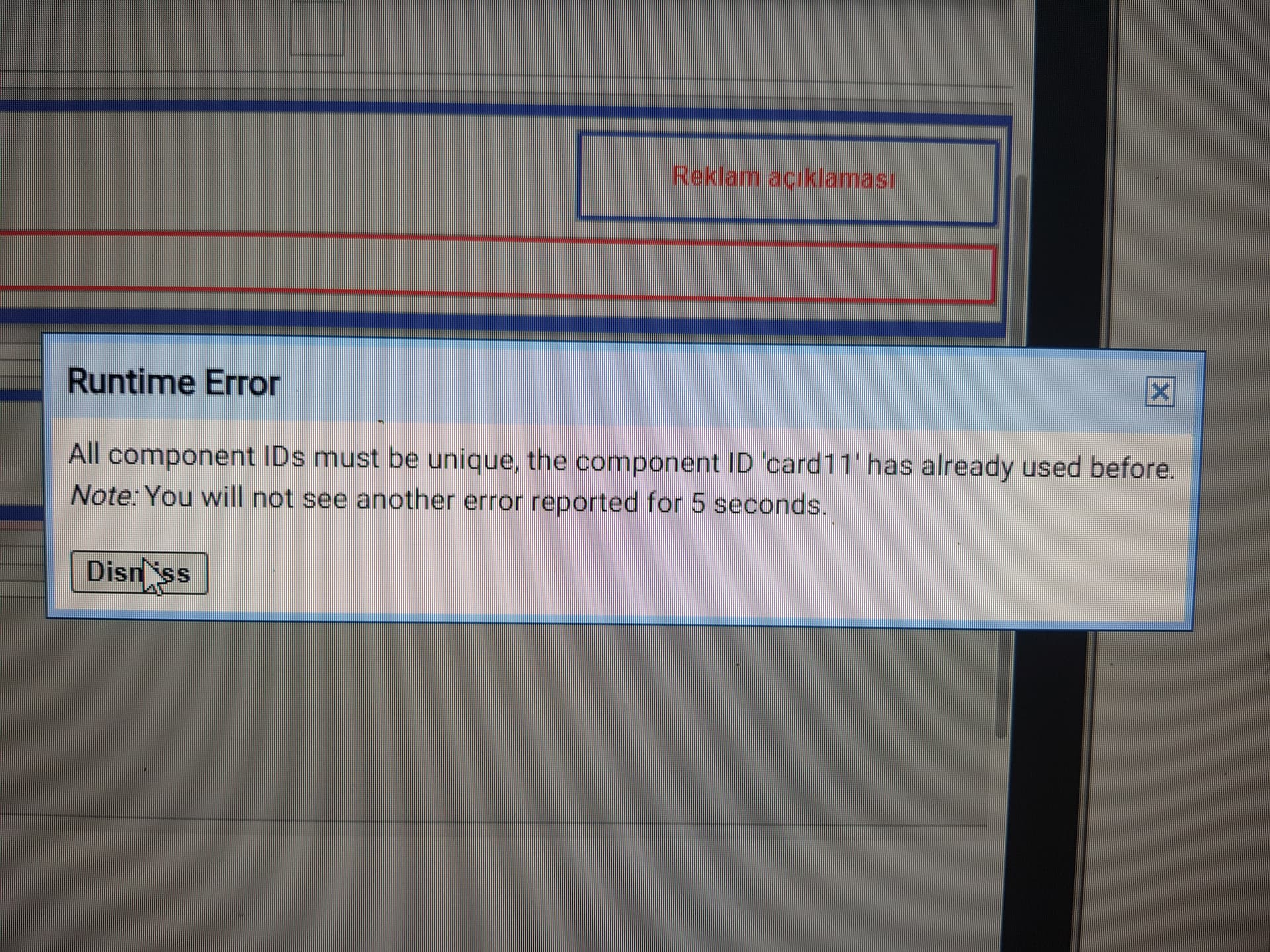 share your complete procedure so that we can guess the problematic area. it says clearly the dynamic component id starting with the text card creating again it semss, if you are creating card view again inside anywhere then do not use card1, instead use card_ {id} for first card use c, second card use cc or try with first card as 1_c and 2_c for second cardview