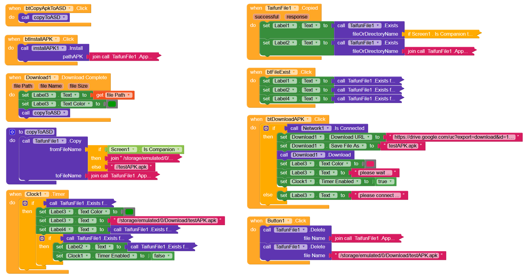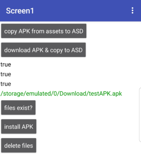 Maybe some would like to test this APK to install an APK (testAPK.apk , 3MB / AI2) (which is in the assets or can be downloaded from Google Drive and is copied into the ASD).