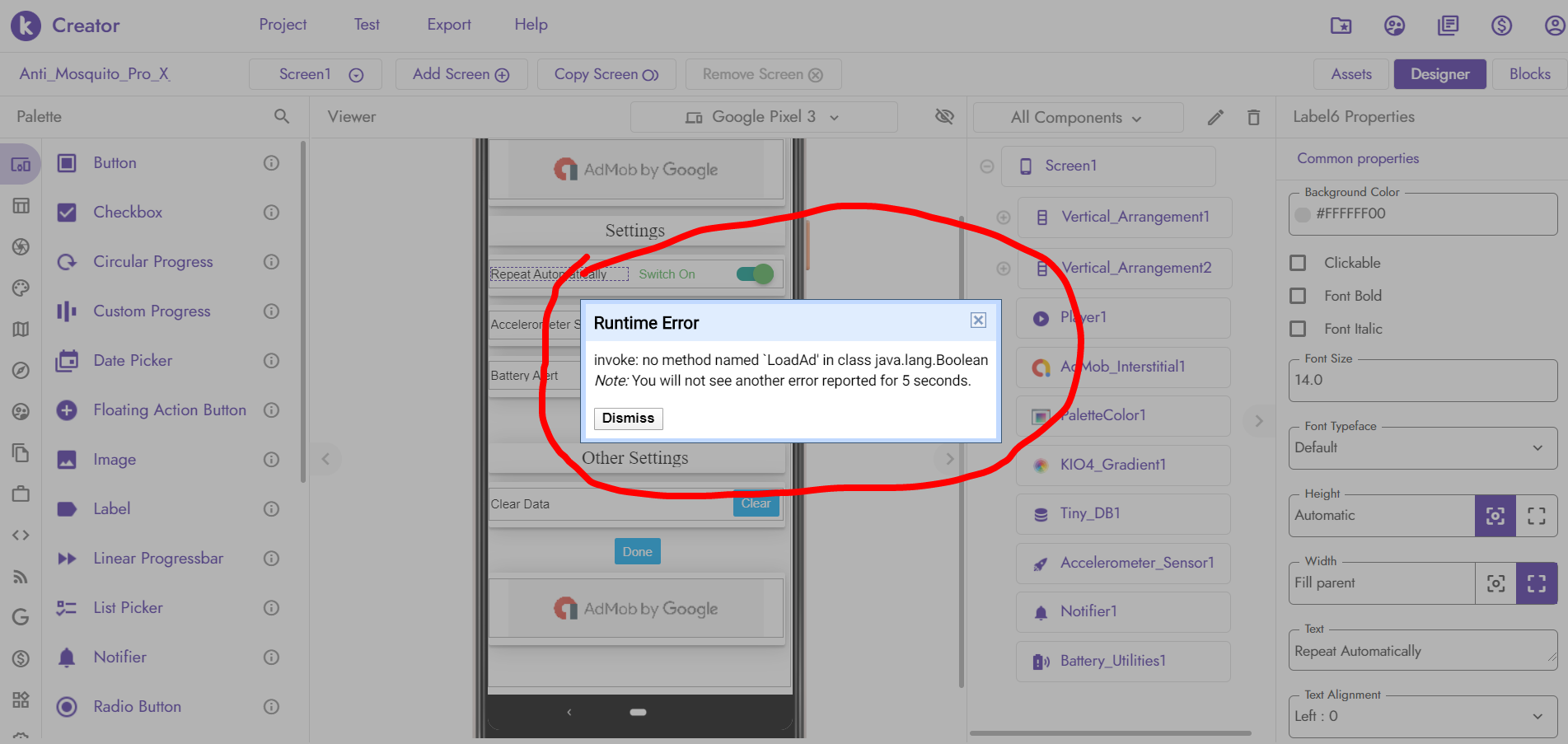 invoke: no method named `LoadAd’ in class java.lang.Boolean