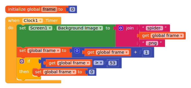 This method is also applicable for animating sprites. You change the block Screen1.BackgroundImage for ImageSprite.Picture.