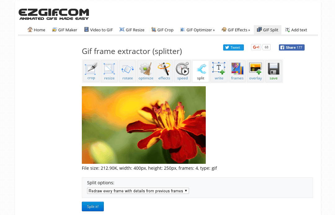 This online tool is designed to convert an animated GIF (and WebM, APNG, MNG, AVIF) image into individual frames for editing or viewing them separately.