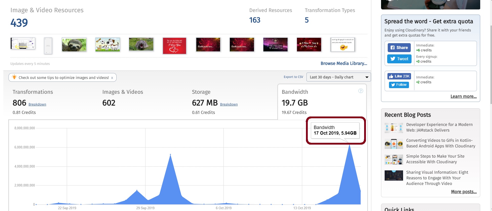 Thank you sir but Firebase storage have even less Bandwidth than Cloudinary.Only 10 GB per month .My app uses 5GB bandwidth per day even when i use in single device for testing.