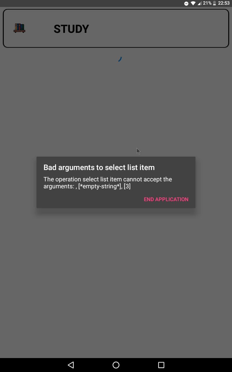 BAD ARGUMENT TO SELECT LIST ITEM