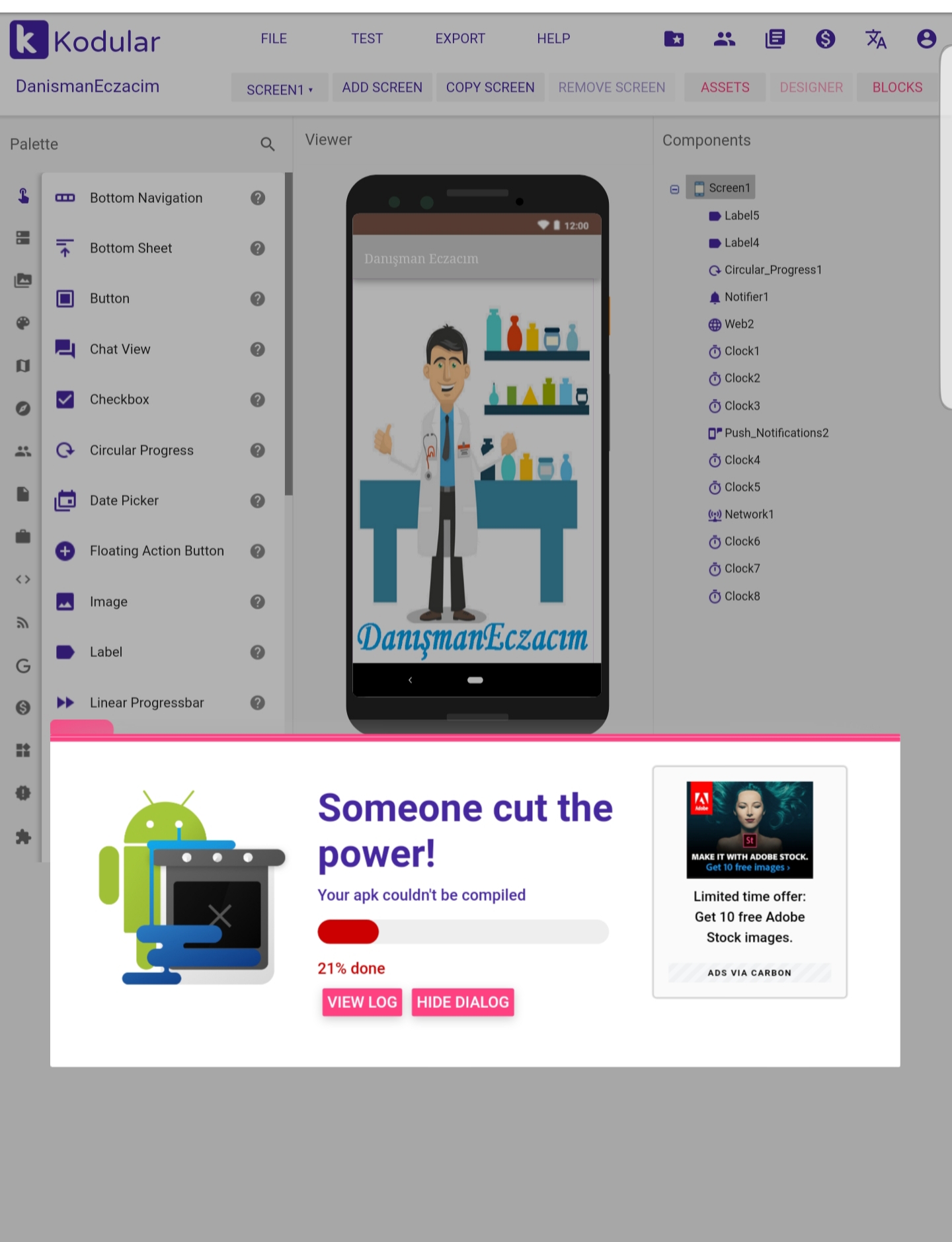 I’m having trouble trying to save my application. I’ve used 8 screens before. But this number was 20 later. At first I could download my application without problems. But now I get the error. I wonder if the cause of the error is too much screen (20 screens)?