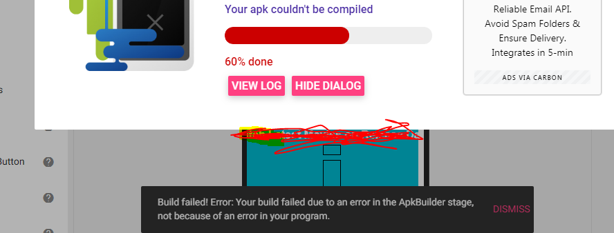 Build failed! Error: Your build failed due to an error in the ApkBuilder stage, not because of an error in your program.