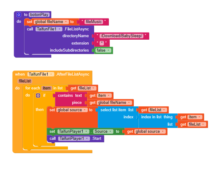 But inside Foreach there is an IF that is only true when the file name coincides with the item in the list. The names are long and without spaces and there are no two equal, so it should reproduce only one. In fact in the companion only one is reproduced and everything works perfect. It is when I compile the apk that the application closes itself…