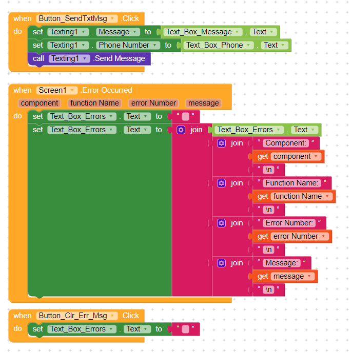 I’ve updated my sms text messaging app to include error messages when I click the send button. See attachment below.