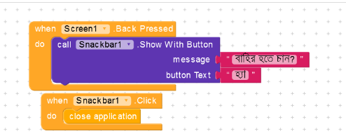 should i use “close screen” instead of ‘close application’ when snackbar1 click? would that work?