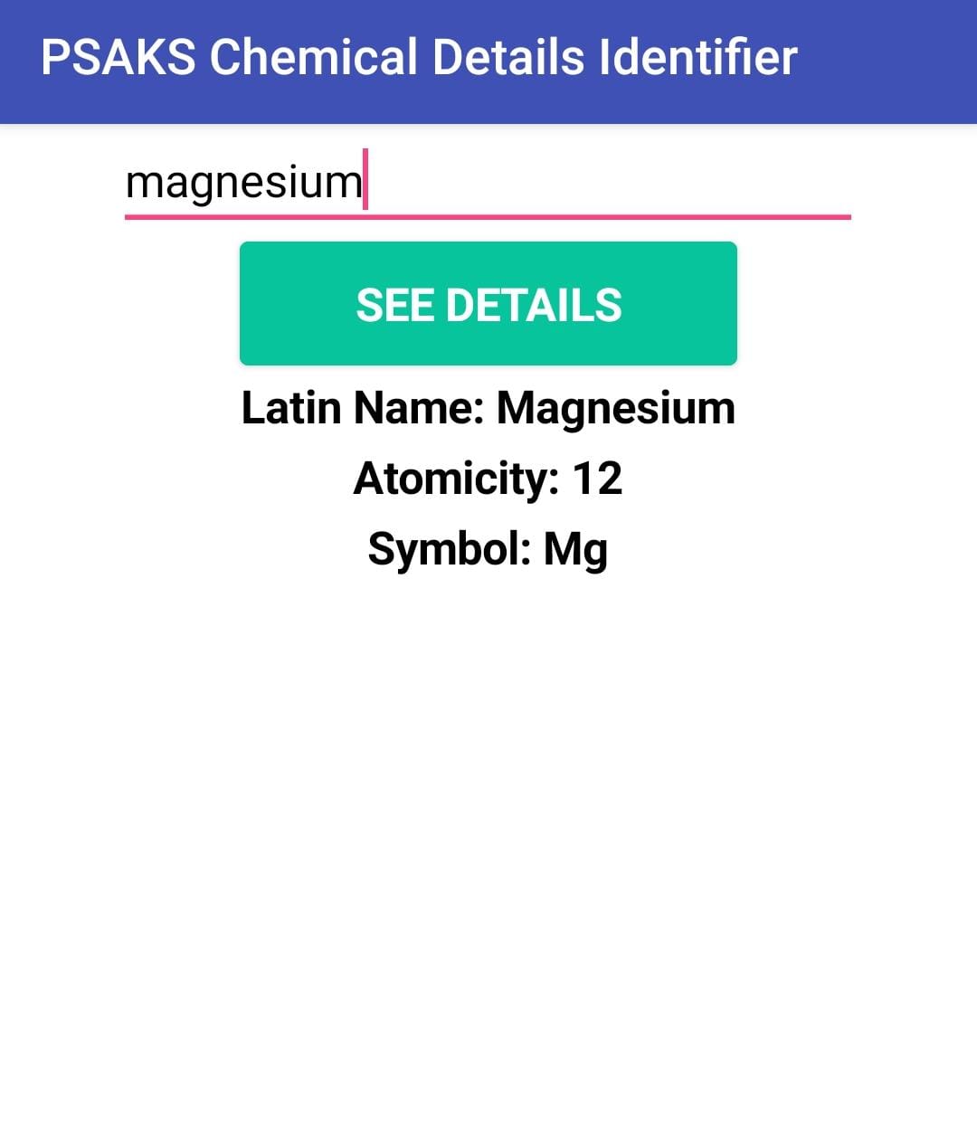 The App is PSAKS Chemical Details Identifier