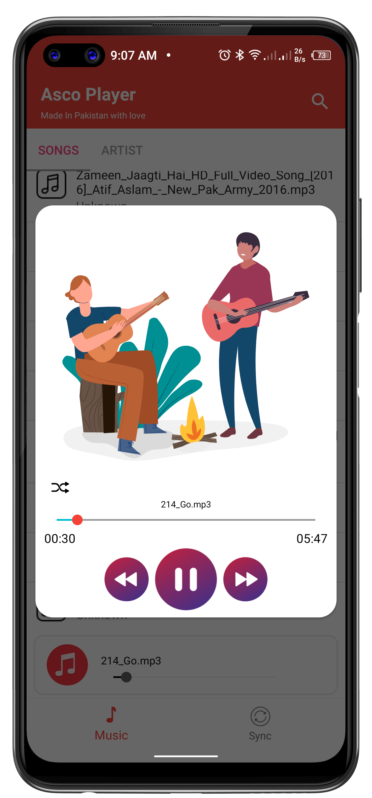 HEY BUDDY AWESOME UI, If u are using listview with image and text then that’s good but in the place of a image u can place you app icon infornt of the songs, it would look better