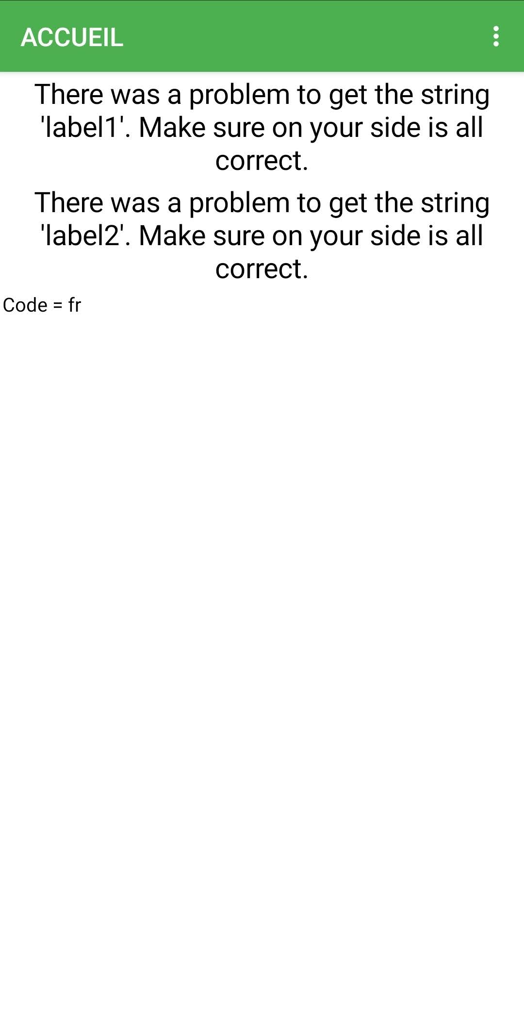 and I have the messages : “There was a problem to get the string ‘String1’. Make sure on your side is all correct.”