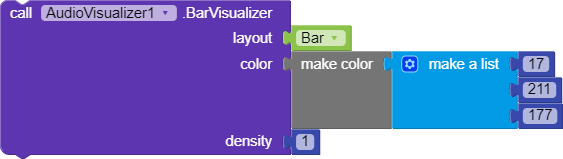BarVisualizer: Layout , Color : RBG color input , Density : you can give value in Int or float