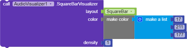 SquareBarVisualizer: Layout , Color : RBG color input , Density : you can give value in Int or float