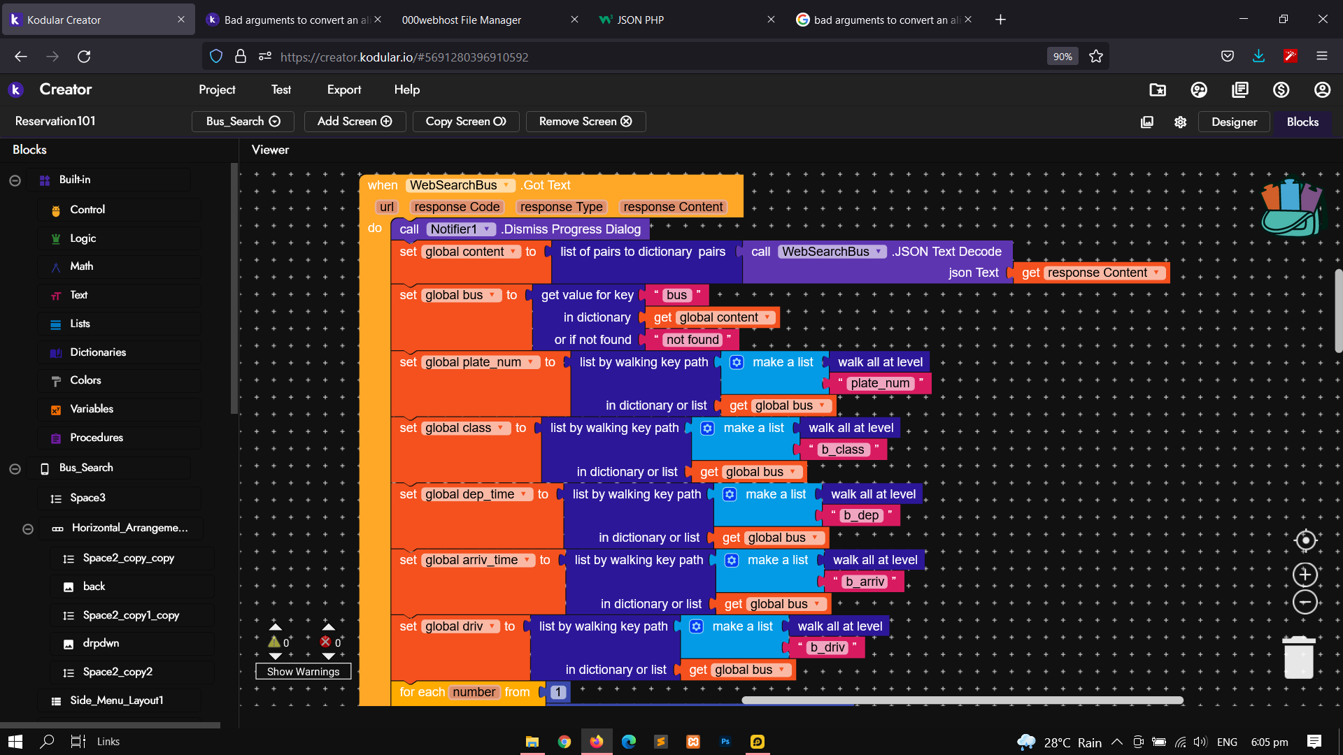 Your blocks seems right to me. But you are receiving invalid response. As I can see in the error you are receiving only br as response. have you checked the response that you are receiving by printing it on a label?