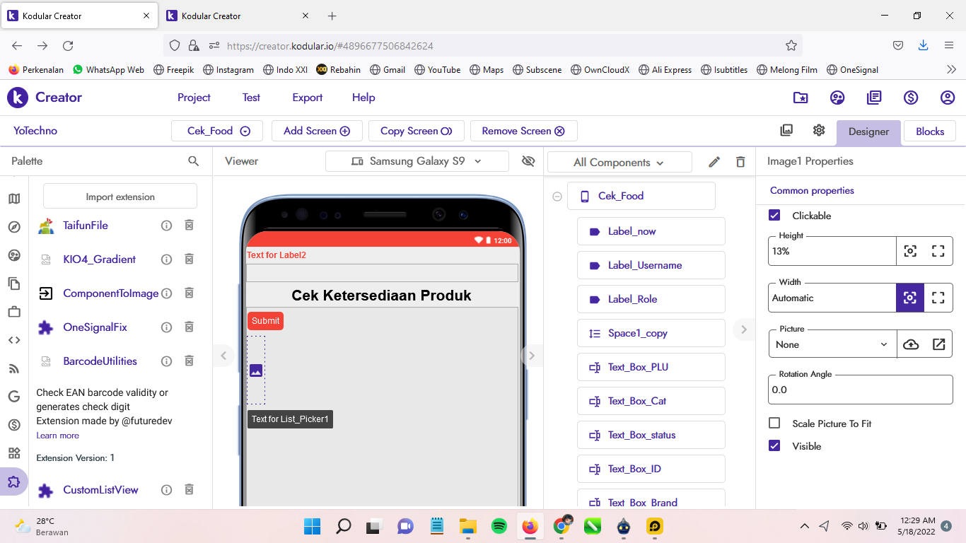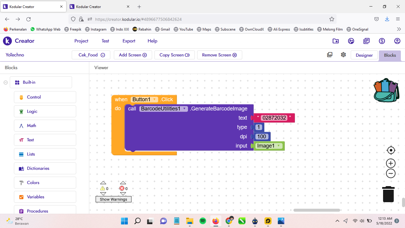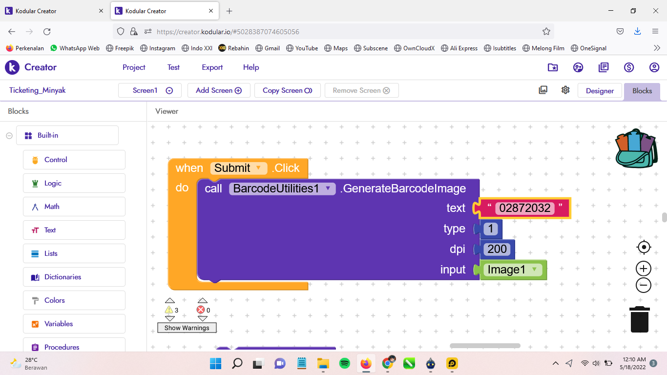 but in second project, image component never show the result of generated barcode..even i use the same block and component..