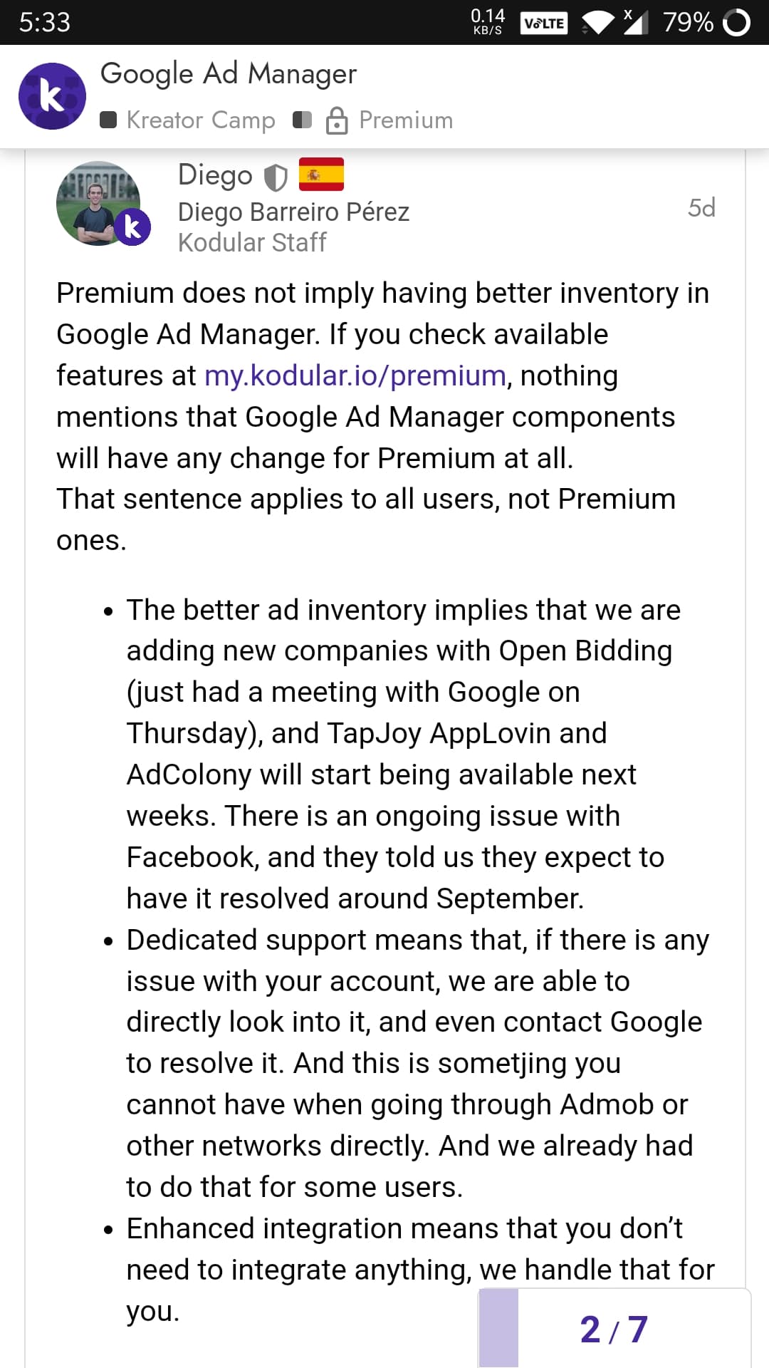 I do not think that the problem is with kodelar because it is one of the Premium Users because it does not need to request to display ads, and the problem will be largely from google ad manger. I don’t know if you understand what I mean or not