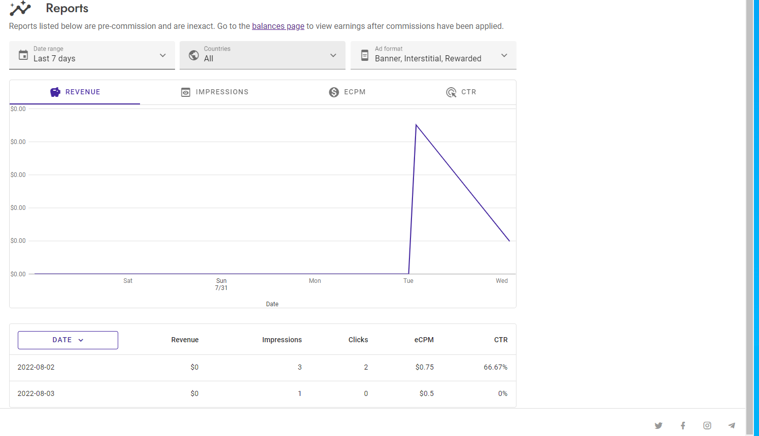 hello i get approved monetization from c.kodular and i got 2 click and today ads not showing what is the problem ?