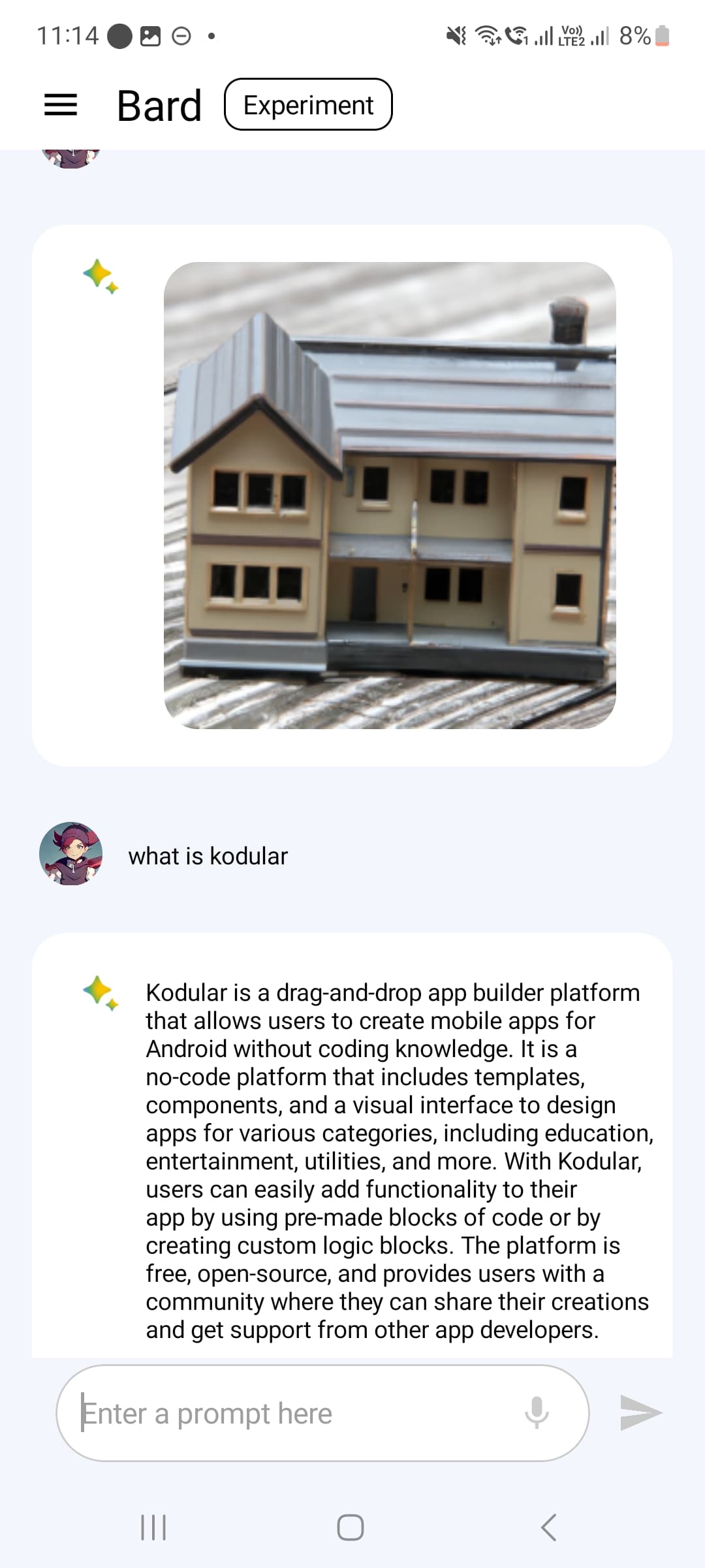 Bard AI, developed using Kodular, only fun project is a compact yet powerful app that harnesses the capabilities of artificial intelligence (AI) for a personalized learning experience. Explore various subjects, engage in interactive lessons, and stay updated with curated content, all within a user-friendly interface. Enhance your knowledge and enjoy an immersive educational journey with Bard AI, the AI-powered app made with Kodular.