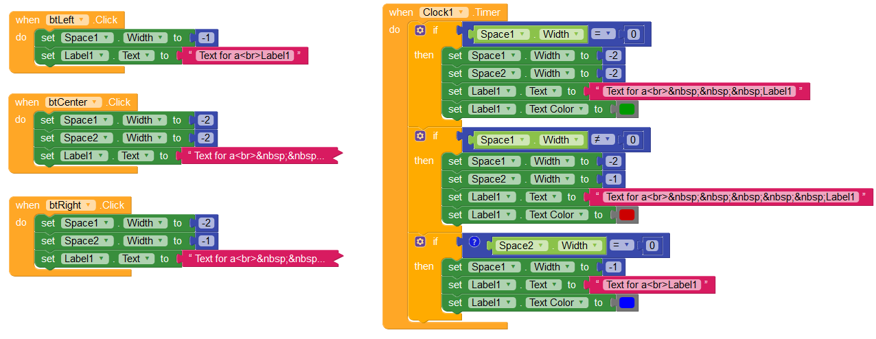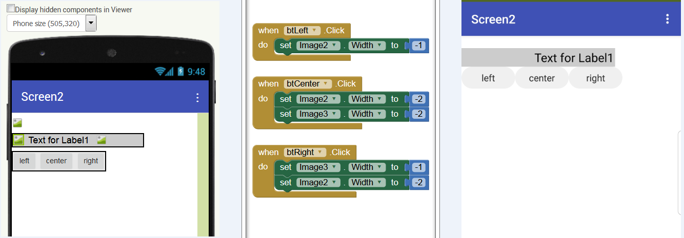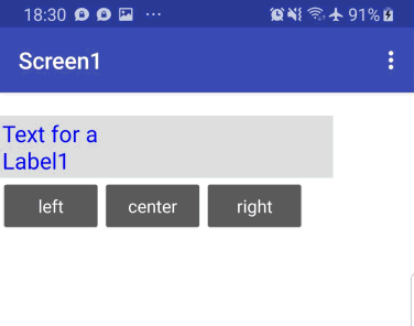 It uses a vertical arrangement with a label in it. I simply change the Horizontal alignment of the vertical arrangement’s content (i.e. Label)