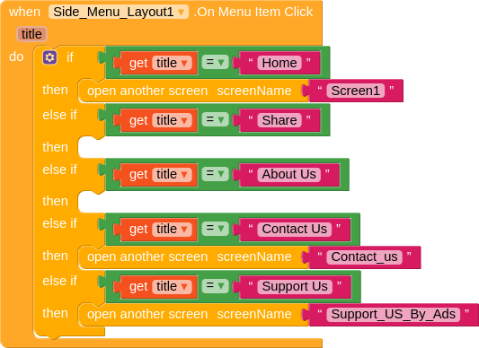 What I want is when i click on Support Us in my home screen and after I check support us’s screen side menu ,It should selected support us.