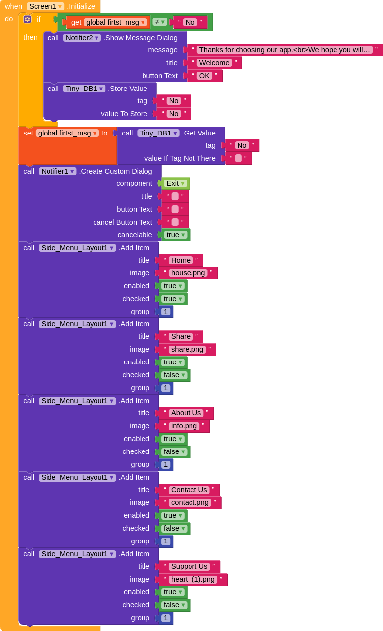 I meant for screen 1 you set true in checked item for Home side menu layout.