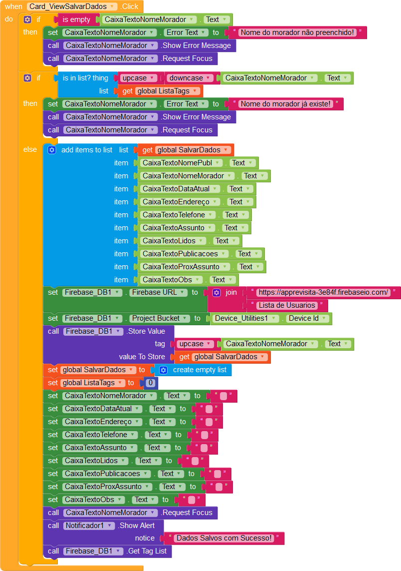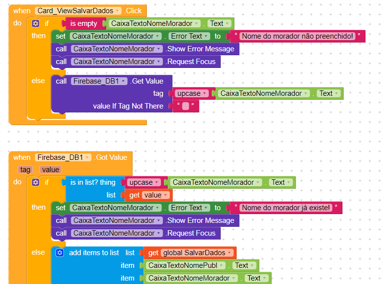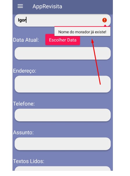 When you type IGOR or PAULO (Nome Morador) for the first time in the app, it replaces the data, the second time it works saying that the name already exists.