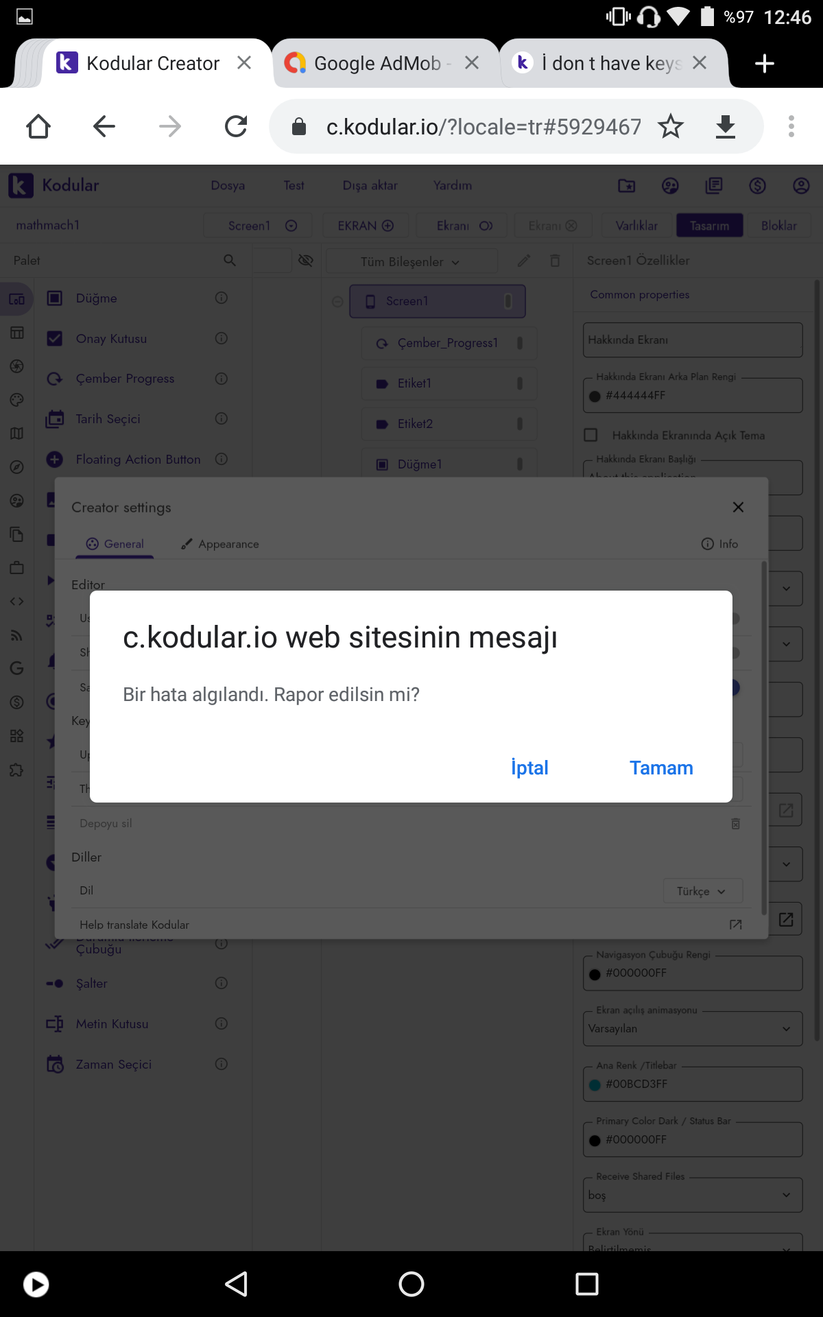 -Then, in the “Advance” setting in the Screen1 design settings, I put the package name (Example of my migrated package name: com.appybuilder.user.projectname).