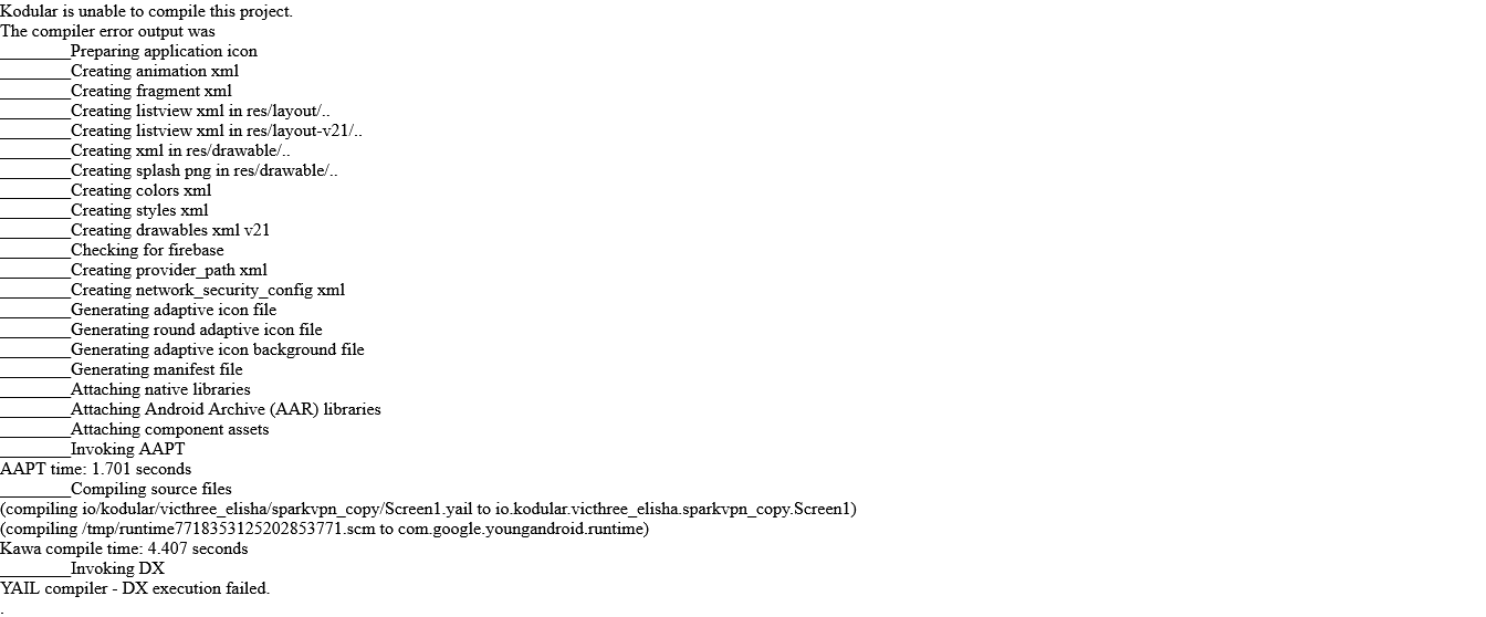 This causes AAPT error but in this case is DX error most probably due to numbers of blocks. Upload project to https://unchive.kodular.io/ and post a screenshot of summary