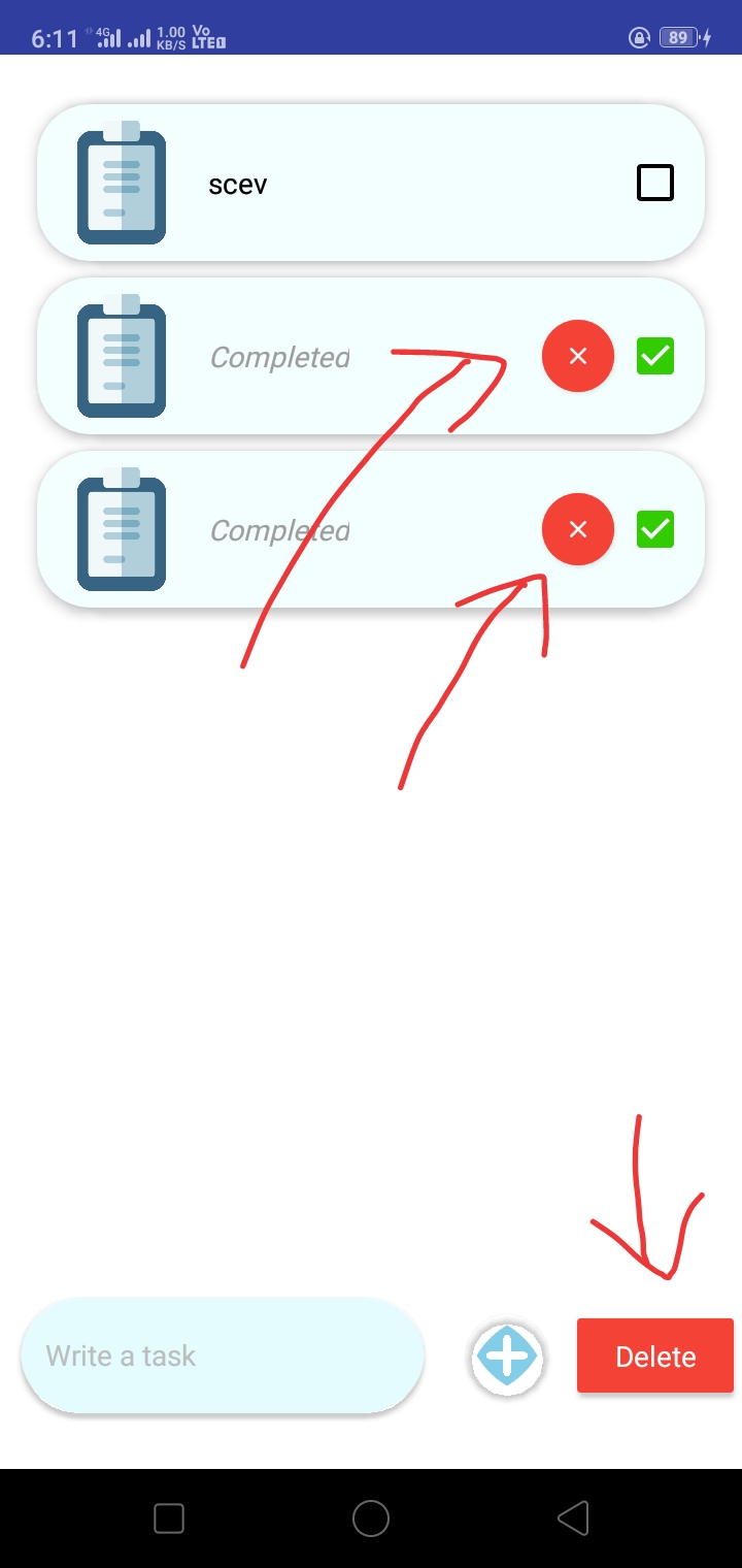 Also clear us, You want delete button in every task or one button to clear all the tasks or marked tasks?